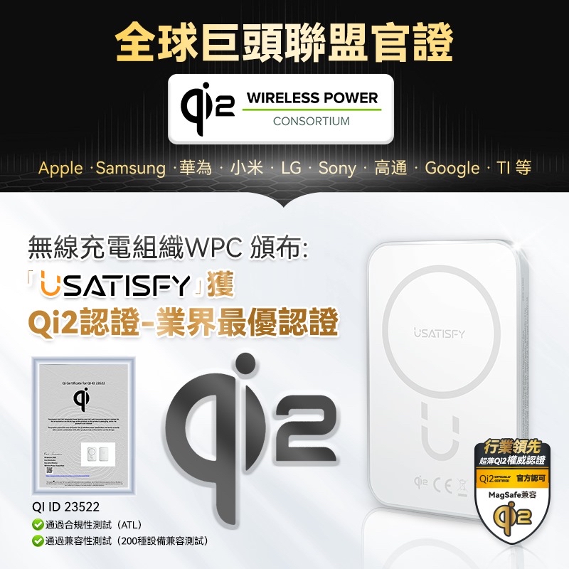 預訂🩷美國USATISFY 超薄先鋒Qi2認證快充多設支援磁吸無線行動電源(MagSafe適配)