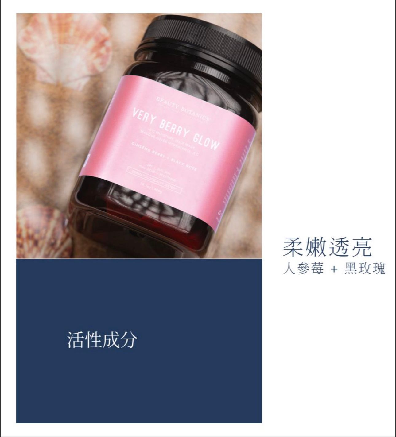 Beauty Botanics 人蔘+ 黑玫瑰面膜400g (-5C° 冷凍保濕啫喱面膜 - 柔嫩透亮) 提升光澤超級配方 - 人參莓提取物+蓮花提取物+黑玫瑰提取物 Very Berry Glow 是乾燥肌膚、暗啞肌膚、受污染肌膚、色素沉澱及衰老肌膚的絕佳選擇 揭開肌膚光彩的新篇章! Very Berry Glow 透過人參莓、蓮花和黑玫瑰提取物的獨特配方,瞬間喚醒您的肌膚,賦予無與倫比的光澤與青春。 這款精華不僅修復疲勞、提亮膚色,還能深層滋養,展現更均勻和明亮的肌膚。立即擁有,讓每一刻的肌膚都閃耀自信光彩! 使用方法: 35g 面膜粉(5匙) 與 28g 純淨水(4匙)快速拌勻,馬上塗勻全面連頸,待20-40分鐘後,沿邊由下向上緩緩撕去,之後按 日常步驟塗抹護膚品。 *過濾水/礦泉水/蒸餾水最好 *盒裝/罐裝附送小匙,每匙為7g